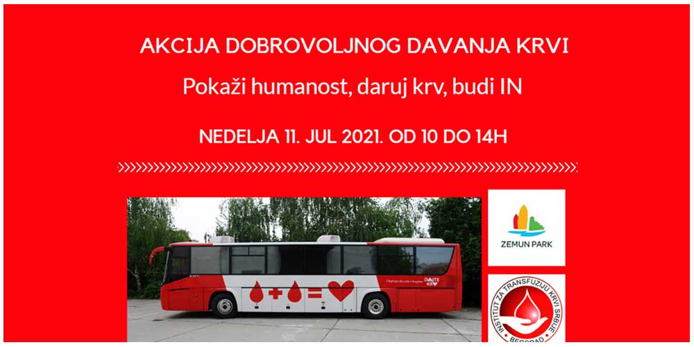 Krv možete dati od 10 do 14 časova. Krv se može dati i u Službi za transfuziologiju krvi KBC Zemun, Vukova 9, Beograd – radnim danom od 7 do 17 časova.