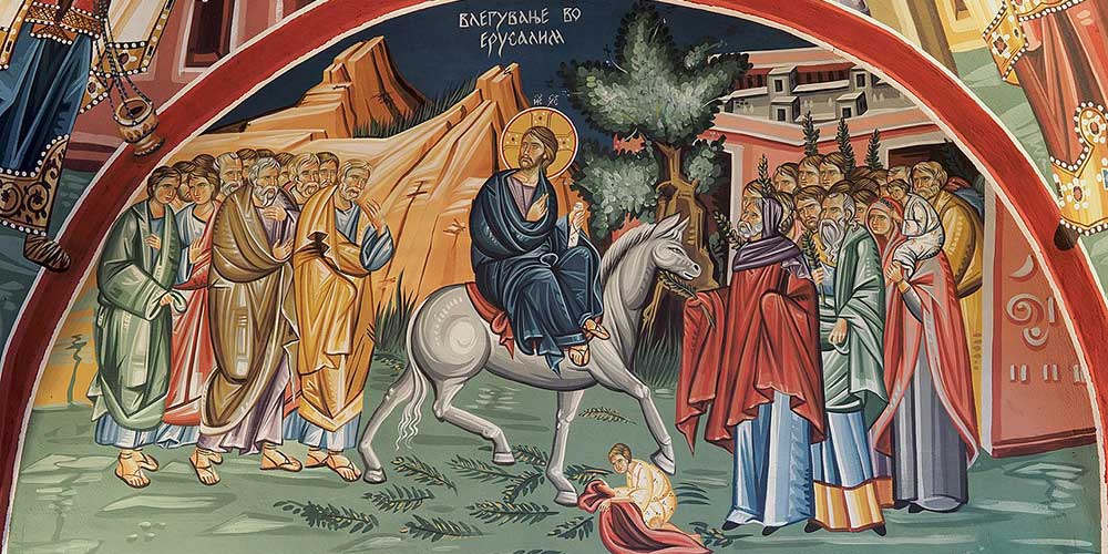 Učenici su uradili sve kako im je Hrist zapovedio i kad su doveli magare, on ga je uzjahao i na njemu krenuo u Jerusalim.